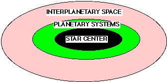 The next level of major complexity above the star system (complexity 2) is the planetary system (complexity 3). With geologic processes continuing on the planets, the creation of more complex molecules would proceed. Each planet is a center of atomic chaos (complexity 3), that is because of the heat from radioactivity and pressure, no molecular bonds can be maintained. The planet surface and the interplanetary space is the order region (complexity 3). The chaos, edge of chaos, order regions of complexity 3 are contained in the edge of chaos (complexity 2). Typically, a edge of chaos of complexity 3 is the planet's surface. In the case the gas giants, their geologically active moons are also on an edge of chaos (complexity 2). If there is no interaction between the spatially separately atomic chaotic centers, then there are separate region of edge of chaos (complexity 2) for each atomic chaotic center (complexity 3).